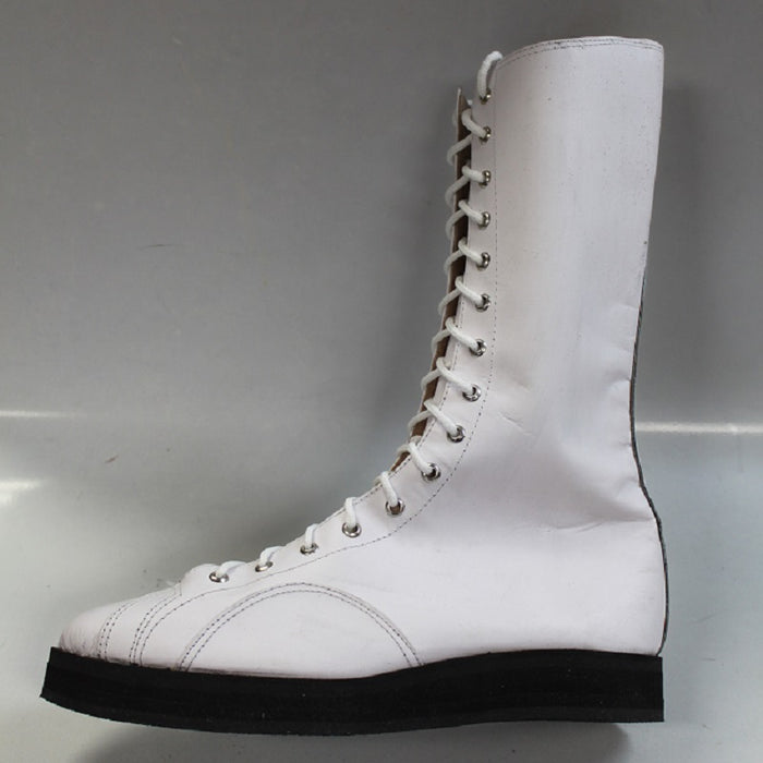 Click on any photos to Enlarge view. White Synthetic Leather (not a real animal leather) boots made to the same standard as our "Custom" boots. These boots are in stock and ready to ship!!!